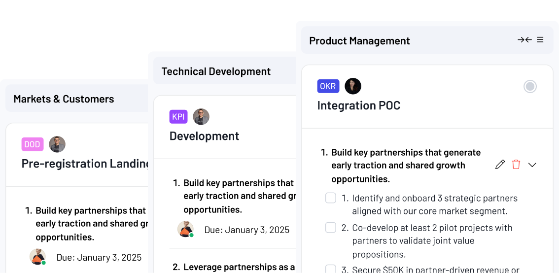 Break down annual improvement plans into structured milestones with clear deadlines, owners, and progress tracking, making long-term goals actionable and visible.