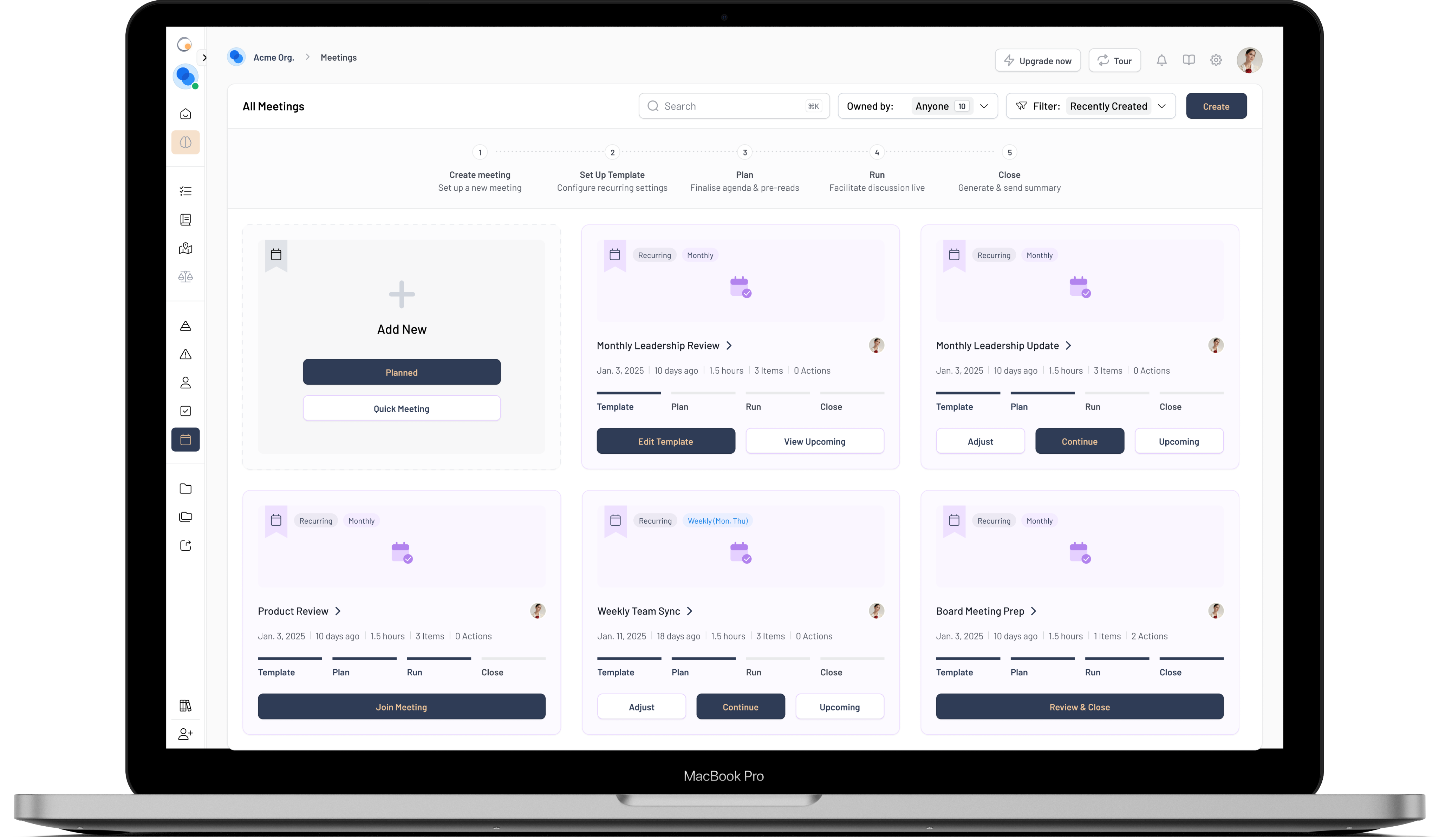 Run meetings with guided workflows and action tracking